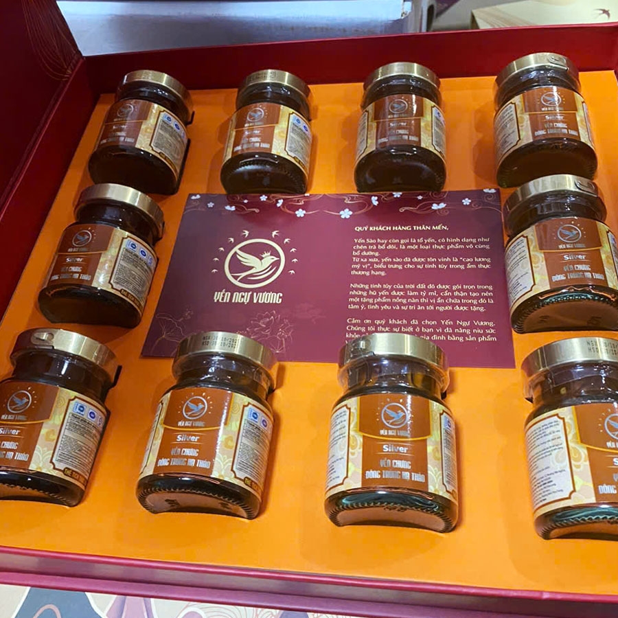 Hộp quà 10 Hũ Yến Chưng Đông Trùng Hạ Thảo Silver là sự kết hợp tinh túy giữa yến sào nguyên chất và đông trùng hạ thảo quý giá, giúp bồi bổ sức khỏe, tăng cường đề kháng và phục hồi thể lực. Thiết kế hộp sang trọng, trang nhã, phù hợp làm quà biếu cao cấp cho người thân, đối tác trong những dịp quan trọng.